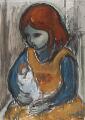 Portræt af en pige. Signeret S. V. L. Olie på lærred. 78×56 cm.