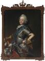 Portræt af Kong Frederik V af Danmark (1723–1766), i stående positur med allongeparyk, klædt i harnisk med Elefantordenen. Usigneret. Betegnet på blændrammen “betegnet på blændrammen H. Gartenzimmer No. 85”. Olie på lærred. 115×86. Samtidig ramme med krone.