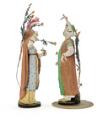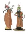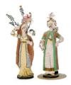 Pair of pottery figurines in shape of Turks. 19th century. Damages. H. 28 cm. (2)