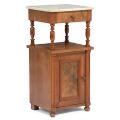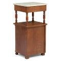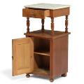Natbord af mahogni med plade af hvid marmor, front med skuffe og paneldør. 19. årh.s slutning. H. 82 cm. B. 39 cm. D. 37 cm.