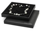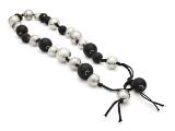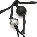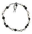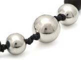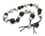 A necklace set with numerous beads of sterling silver and ebony, mounted on a black string. L. app. 128 cm.