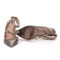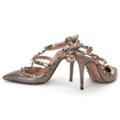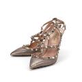 Et par “Rockstud” stiletter af bronzefarvet læder prydet med nitter, spidse snuder og justerbar ankelstrop. Str. 36. Hæl højde ca. 10 cm.