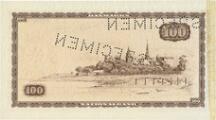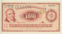 100 kr 1961 A0–0J-erstatningsseddel, nr. 0000000, Nielsen / Riim, Sieg 137, DOP 146, Pick 46 - hulmakuleret med SPECIMEN, spor efter opklæbning på revers