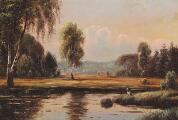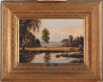 Landskab med stork. Sign. RE. Olie på lærred. 24×34.