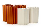 “Nuage”. A collection of cloud-shaped vases, each with eight tubular openings. Made by anodised aluminium and ceramic in the colours burnt orange and white. Designed in 2016. Made by Vitra. (9)