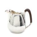 Hammered sterling silver milk jug with sweeping wooden handle. Hans Hansen 1948. Weight 315 gr. H. 10,5 cm.