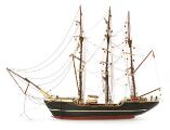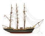 Skibsmodel af bemalet træ. 20. årh. H. 69 cm. L. 95 cm.