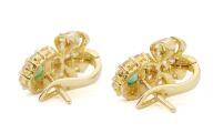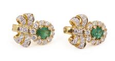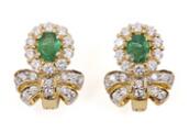 Et par smaragdørestikker af 14 kt. guld prydet med ovalslebne smaragder samt farveløse sten. Samlet vægt ca. 4 g. L. 15 mm. (2)