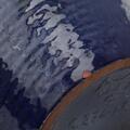 A German earthenware floor vase decorated with blue glaze. Maked W.-Germany. H. 47 cm.