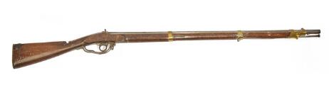 A rare Danish trial smooth bored musket pattern 1841 with a c 101 cm long barrel marked M-1841 and B-1842–88 on the octagonal part of the barrel.