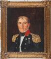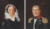 A pair of portraits of a naval officer in uniform and a woman in a black dress with a white headscarf. Signed Julius Tuxen, May 1844. Oil on canvas. 34×29. (2)