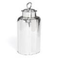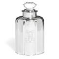 A Danish Régence silver tea caddy, gilt interior, of fluted shape, domed top with handle on circular screw-on lid, including a cork piece in silver mountings and eyelet, body engraved on each side with resp. an alliance coat of arms, presumably for the families Sehested and Rantzau, and a mirrored monogram for publisher Jacob Hegel, lobed base. Maker Knud Rasmussen Brandt, licensed in Horsens 1737–1778, the widow continues the workshop until 1785. Weight 596 g. H. (excl. handle) 17 cm.
