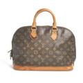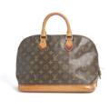 “Alma” taske af brunt monogram kanvas med brune læderbesætninger, gyldne beslag, to hanke, et lynlås rum med en indvendig lomme og brunt stof for. Hængelås med én nøgle medfølger. H. 24 x B. 34 x D. 16 cm. 1998.