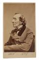 Black-and-white visiting card photograph of Danish author Hans Christian Andersen (1805–1875). Albumen silver print. Front with later inscription, '1805–1875'. Back with authentic handwritten (pen) greeting from HCA as well as his full signature, 'Hans Christian Andersen'. Recording from 1867. Present development 1867-ca. 1873. 10.8×6.4 cm.