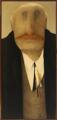 “Handelsmand”. Sign. Albert Bertelsen samt på bagsiden, 1971. Olie på lærred. 130×60.