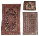 Three Persian rugs. Keshan, medallion design. 126×207 cm. Hamadan small rug. 63×82 cm. Tabriz. 100×155 cm. All 1960–1990.(3)