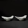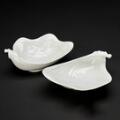 “Hvid Konkylie”. Et par skåle af porcelæn dekoreret med klar glasur. Tryksign. monogram, 347. Kgl. P. H. 8,6. B. 16,5. L. 24,5. (2)