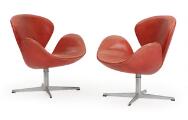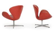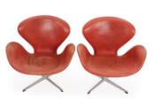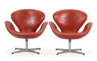 “Swan Chair”. A pair of easy chairs with profiled aluminium base, seat, sides and back upholstered with brown leather. Model 3320. Designed 1958. Manufactured and marked by Fritz Hansen. 1960s. (2)