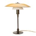 “PH-4,5/3”. Browned brass table lamp marked Pat. Appl. Yellow/white metal top shade, single layer opaline glass middle shade. Manufactured 1926–1928 by Louis Poulsen. H. 53 cm.