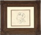 The Greek hero Theseus is lifting a heavy rock. Signed and dated E. Mai 1806 and inscribed Aegeus [..] Theseus. Drawing ink and pencil on paper laid on paper. Sheet size 15 × 17.5 cm.