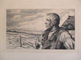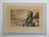 “Jyden er stolt og sej. Steen Steensen Blicher”. Tryksign. Achton Friis 1903. Litografi på papir løst monteret på pap. 22,5×33. Uindrammet.