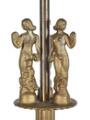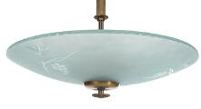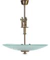 Art Deco pendant with bronzed metal frame, decorated with standing women, bowl-shaped shade of frosted glass. 1930–40s. H. 54. Diam. 48 cm.