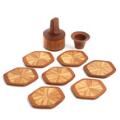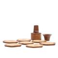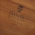 “Cane and Teak”. A set of seven glass coasters and a pepper mill of teak inlaid with bamboo. Stamped Dansk Designs Denmark IHQ and Danmark, respectively. Model 1508 and 1525. Made by Nissen, Langaa. Designed in 1959. Glass coasters L. 10.5. W. 9 cm. Pepper mill H. 11 cm. And a teak beaker by Wiggers, Denmark. H. 4.5. Diam. 7 cm. (9)