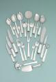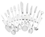 Comprising: 12 dinner knives with short handle L. 22.5 cm. 7 dinner forks L. 19.2 cm. 6 dinner forks L. 18.2 cm. 6 large dinner spoons L. 19.5 cm. 1 dinner spoon L. 18.5 cm. 10 luncheon knives with short handle L. 19.7 cm. 1 luncheon knife with long handle L. 20.5 cm. 12 luncheon forks L. 16 cm. 10 dessert spoons L. 16.5 cm. 12 pastry forks L. 14 cm. 1 fruit knife L. 16.4 cm. 2 teaspoons L. 11.8 cm. 10 coffee spoons L. 10.7 cm. 1 salad set with steel L. 18.7 cm. 1 sardine fork L. 13.4 cm. 1 cold cut fork L. 14 cm. 1 bottle opener with long handle L. 16 cm. 1 fried egg server L. 19.5 cm. 1 pie knife L. 25.2 cm. 2 compote spoons L. 13.7 cm. 1 small server with steel L. 15.7 cm. 1 sauce ladle L. 18 cm. 1 steak fork L. 20 cm.