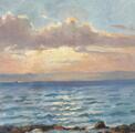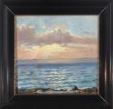 Solnedgang over havet. Sign. Finn Wennerwald 20. Olie på lærred. 30×32.