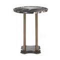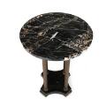 “Gueridon”. Pillar table with four pillars and “feet” of brass. Top of marble and base of metal. H. 70 cm. Diam. 55 cm.