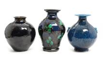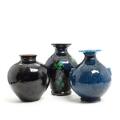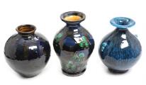 Three earthenware vases decorated with blue glazes. Signed HAK. H. 18.5–22.5 cm. (3)