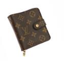 “Compact Zip Wallet” pung af brunt monogram coated canvas med diverse rum, en lynlåslomme og gyldne beslag. H. 11 x B. 9 x D. 3 cm.