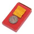 The fire department in Denmark, 25 years anniversary medal in silver, LS 7–012, with ribbon and damaged box