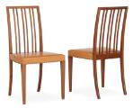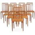 Set of ten rare Cuban mahogany chairs. Seat upholstered with brown, coloured leather, brass nails. Made by cabinetmaker A.J. Iversen. (10)