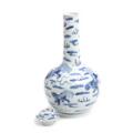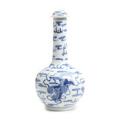 Kinesisk flaskevase af porcelæn, dekoreret i blåt med fohunde og skyformationer. Mrk. Qing. 19. årh. H. 27.