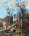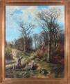 A lumberjack gets a visit. Signed Milton Jensen 1885. Oil on canvas. 152×126 cm.