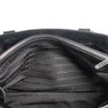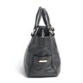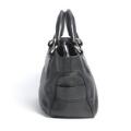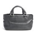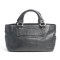 A “Boogie” bag of black leather with silver tone hardware, two handles, two exterior side pockets, two interior compartments divided by a zipped pocket, two interior pockets and black fabric lining. H. 18 x W. 31 x D. 13 cm.