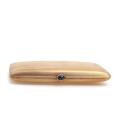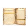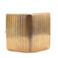 Cigaretetui af delvist satineret 14 kt. guld prydet med cabochonslebet safir. Stemplet E.A.W. og 585. Vægt ca. 143 g. L. 10,5.
