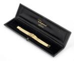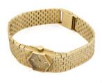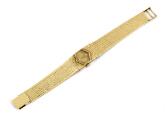 Wristwatch of 18k gold. Mechanical movement with manual winding. 1960s. Integrated bracelet of 18k gold. Circumference approximately 14.5 cm. Diameter 15 mm. The watch weighs approx. 38.9 g.