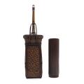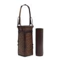 Ikebana flower basket of smoked bamboo with a tall handle, four-sided with a tightly woven design. Liner enclosed. Signed Chikuyu sai. Comes with matching signed box and document. H. 40. W. incl. handle 13. L. 11 cm.