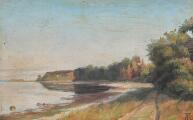 Coast scenery. Signed monogram. Oil on panel. 12×18.5 cm.
