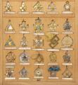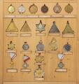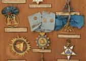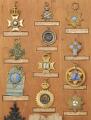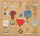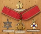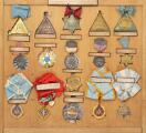 Large and comprehensive collection of Masonic jewels and medals, mostly German and Hungarian lodges, late 18th century to early 20th cent. The collection includes a total of 179 pcs, several of them scarce or rare, they have all been identified with lodge, city and references. The collection is presented in 4 lightly damaged showcases from the early 20th cent.