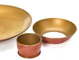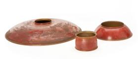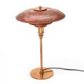 “PH-3/2”. Patinated brass table lamp. Marked “Pat. Appl.”. Red/gold copper shades. Manufactured 1926–1928 by Louis Poulsen. H. 44 cm.