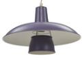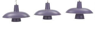 “Badminton”. Sæt på tre pendler af lilla- og hvidlakeret metal. Udført hos Louis Poulsen. H. 27. Diam. 40. (3)