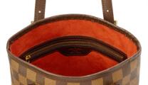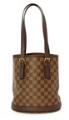 “Marais Bucket” taske af Damier Ebene kanvas med mørkebrune læderbesætninger, gyldne beslag, to justerbare hanke, et åbent rum med en indvendig lynlås lomme, kæde og orange ruskindsfor. H. 25 x B. 23 x D. 16 cm. 1998.