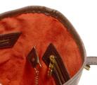 Fremstår med mindre alders- og brugsslitage. Noget slid og hakker i læderkant foroven. Rigtig god stand indvendigt med minimalt slid. Alle mål er cirkamål.