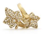 Diamantring af 18 kt. guld i form af blade prydet med talrige brillantslebne diamanter på i alt ca. 0.50 ct. Farve: G-H. Klarhed: VVS-VS. Vægt ca. 8,4 g. Str. ca. 53.