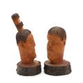 Two carved figures of Arctic mountain birch in the shape of a woman and a man. Unsigned. Southwest Greenland. H. 10.5–13.5 cm. (2)