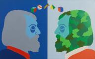 “Dialog med mig selv”, 1983, diptych. Signed on the reverse. Oil on canvas. 100×160 cm.