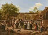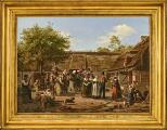 “Sjellandsk Bondebryllup (Hjemkomsten fra Kirken)”. A Zealandic peasant wedding. The return from church. Signed and dated P. Larsen 1851. Oil on canvas. 71×95 cm.